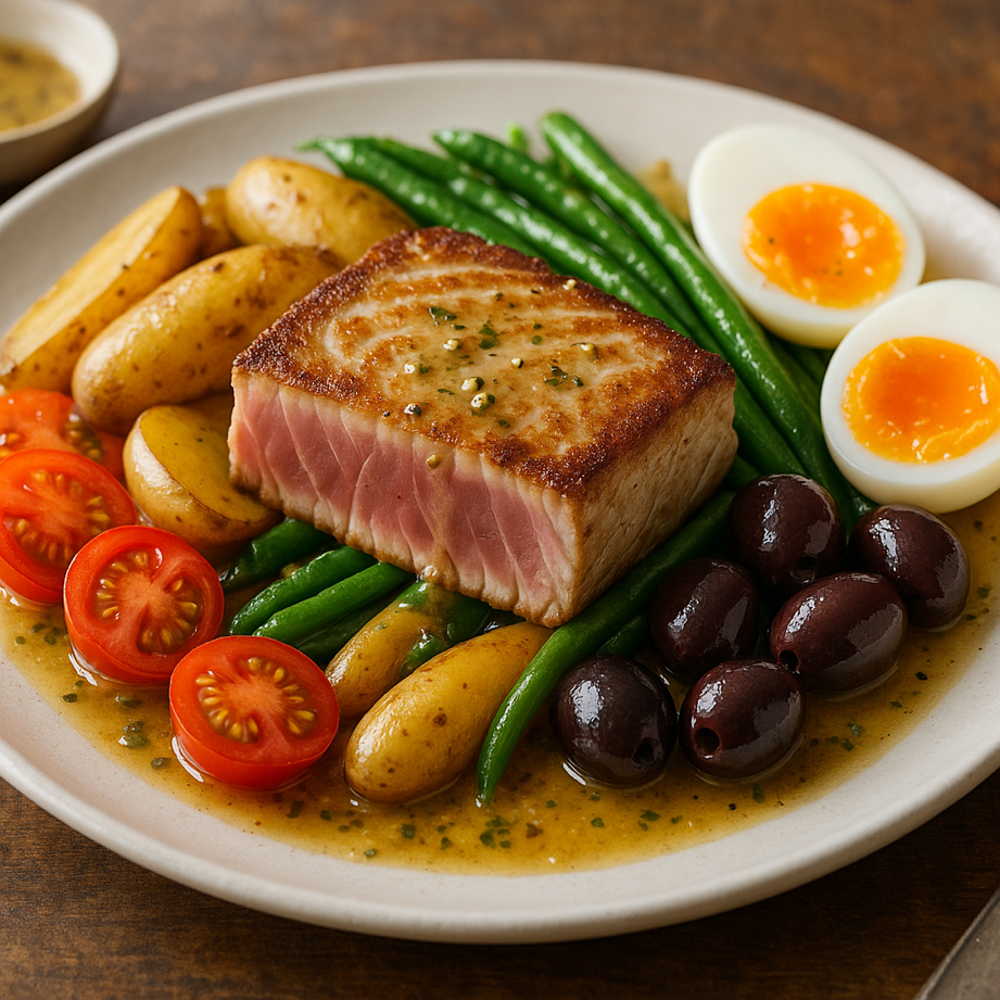 - •Traditional Niçoise uses canned tuna, but this sous vide version is restaurant-quality