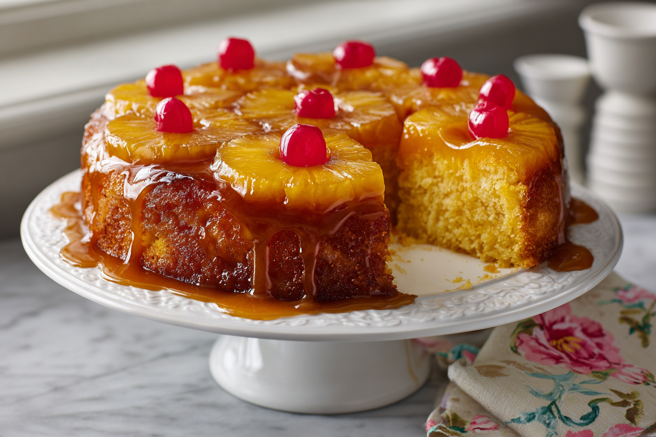 For upside-down cake, arrange the warm pineapple rings in a buttered 9-inch cake pan, place a cherry in the center of each ring, drizzle with 3 tablespoons of the reserved syrup, and pour your favorite cake batter on top before baking.