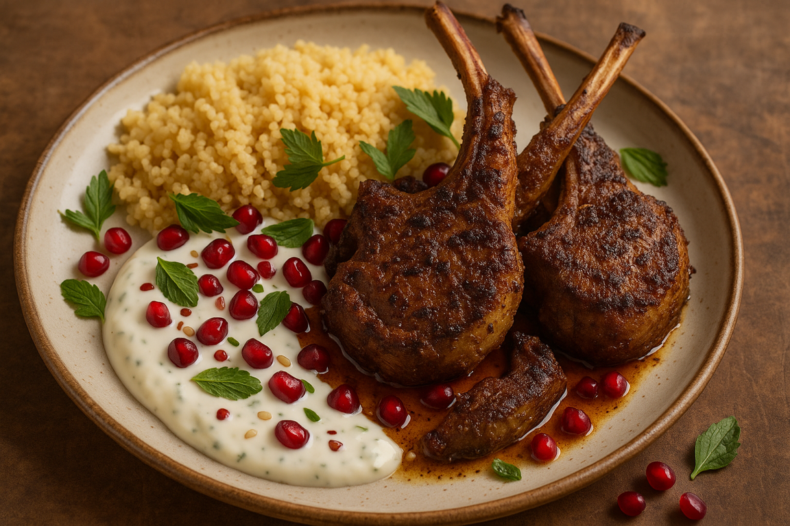 Arrange lamb chops over yogurt sauce